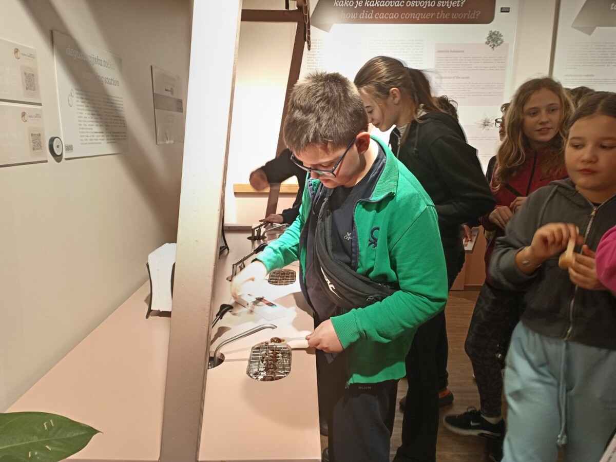 Sljedeća postaja bio je Muzej čokolade, gdje su se učenici kroz zanimljivo vodstvo upoznali s poviješću ove omiljene slastice. Imali su priliku kušati različite vrste čokolade i pratiti njezin razvoj od prvih otkrića u drevnom Meksiku do modernih čokoladnih delicija kakve poznajemo danas.