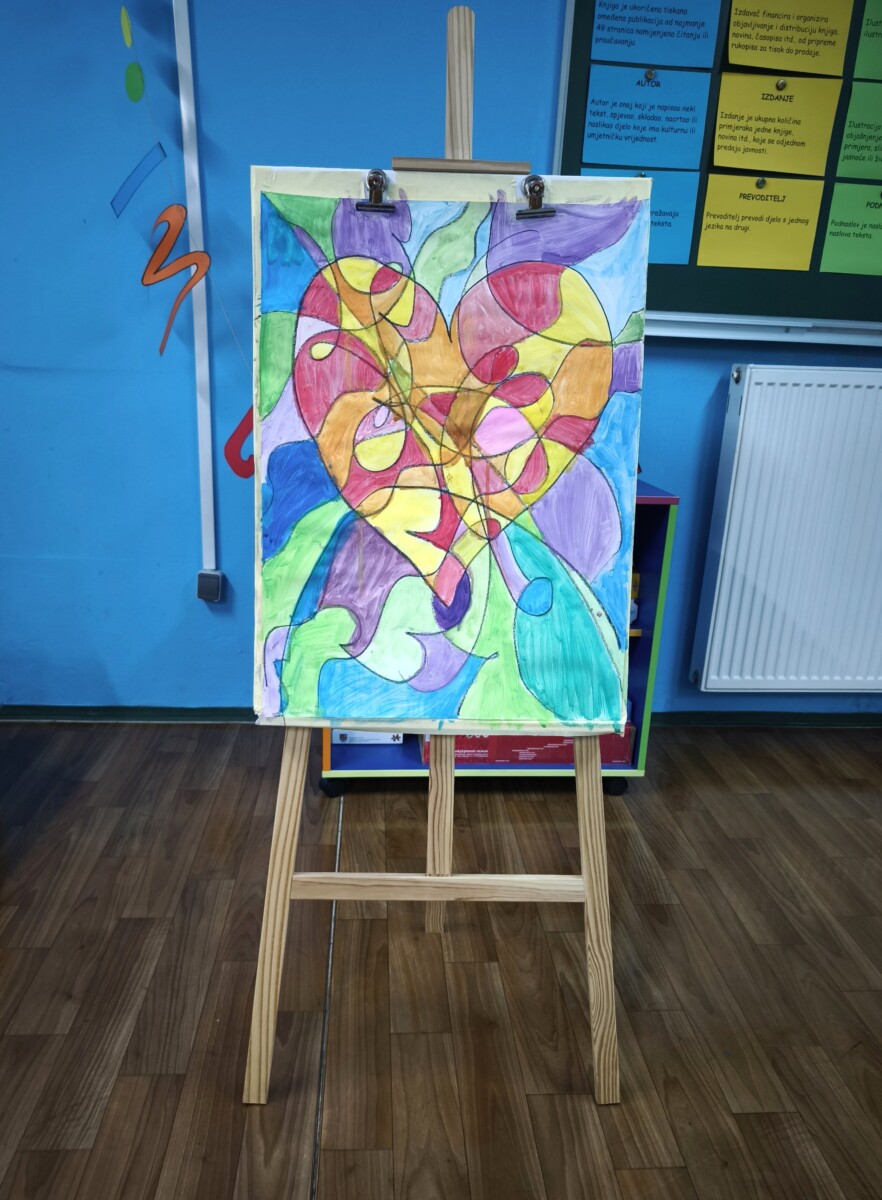 ‘Kako će izgledati valentinovsko srce vašeg razreda?’ bilo je postavljeno pitanje u ovom centru. Uz pomoć crne pastele, vodenih boja i malo mašte, učenici su zajedno naslikali glavni simbol ljubavi – srce, u toplo-hladnom kontrastu.