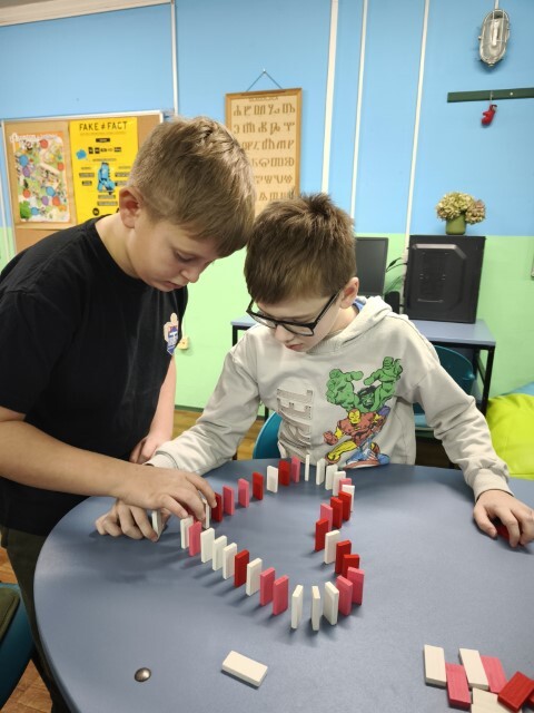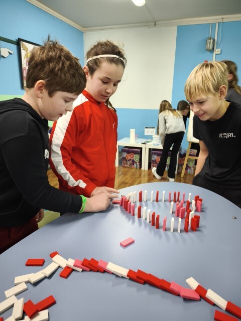 Učenici su trebali postaviti domino pločice u obliku srca te izazvati domino lančanu reakciju. Nisu doživjeli samo radost gradnje, već i zanimljive principe fizike i inženjerstva.