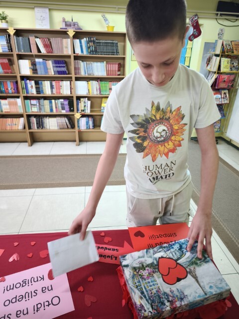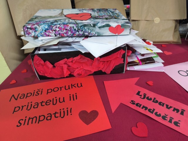U našoj školskoj knjižnici bio je postavljen ljubavni sandučić u koji su učenici mogli ubaciti pismo ili poruku kojim izražavaju ljubav ili prijateljstvo. To im je ujedno bila i prilika da pokažu koliko im je stalo do prijatelja ili simpatije. Bili su maštoviti u kreiranju pisama i sadržaja poruka te su si dali truda da razvesele druge i uljepšaju im dan. Nevjerojatnih 227 pisama, koliko ih je ukupno prikupljeno, podijeljena su u petak uoči Valentinova, šireći radost i pozitivu među učenicima.