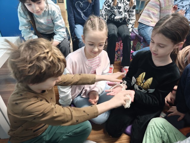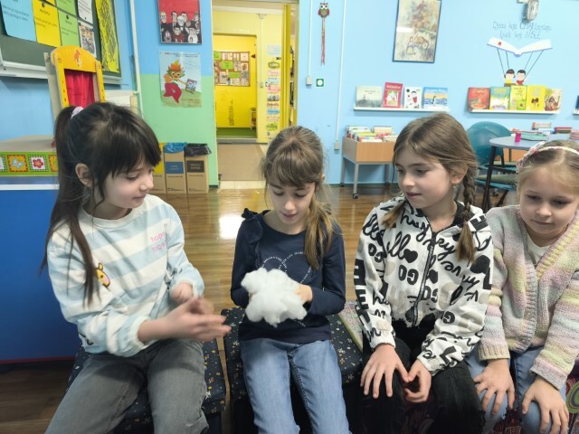 Nakon uvodnog razgovora i taktilnog istraživanja kako nastaje tkanina te najave priče, učenici su sjeli u krug, udobno smješteni i spremni za slušanje. Uslijedilo je čitanje priče ‘Videkova košuljica’ uz prikazivanje ilustracija što je dodatno obogatilo doživljaj, a učenici su sa zanimanjem pratili svaku riječ.