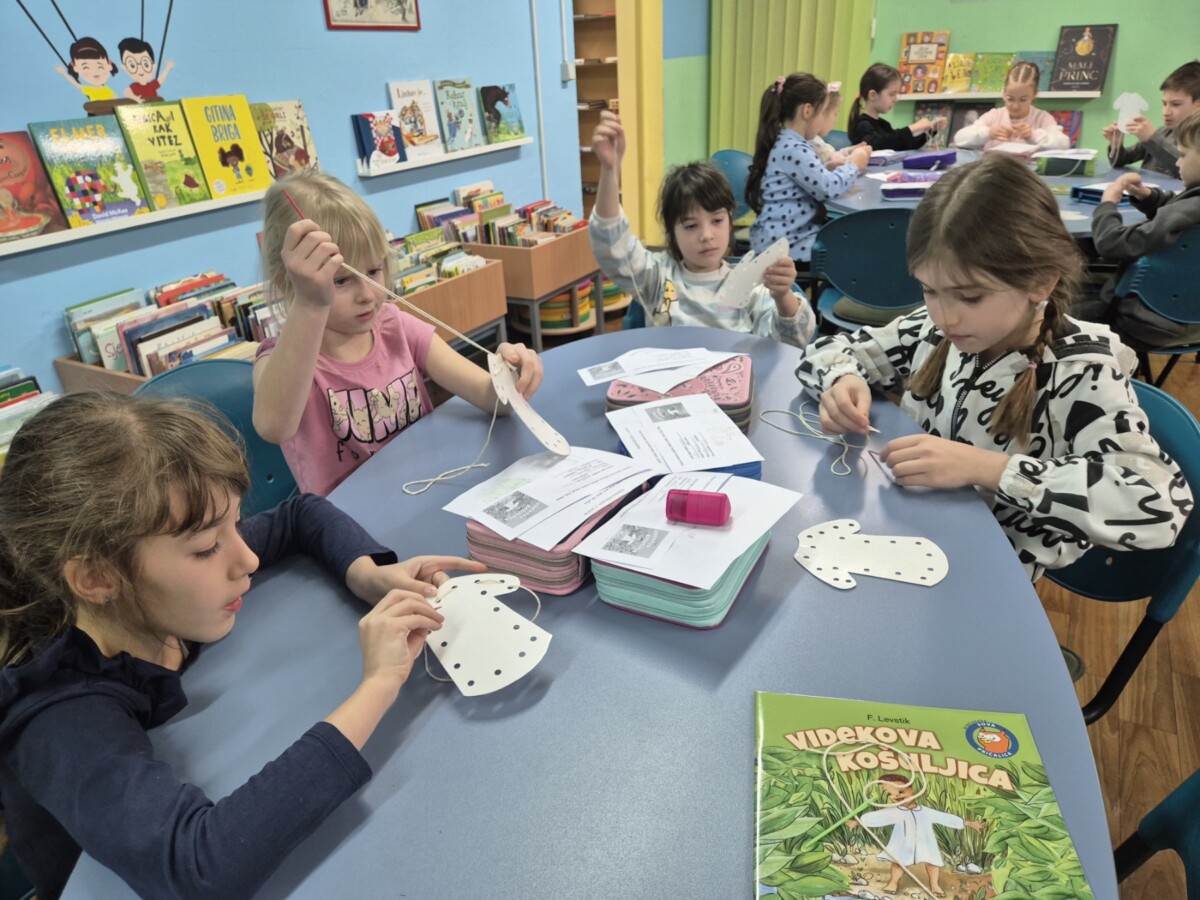 U školskoj knjižnici učenici 1. a razreda imali su svoj prvi sat lektire koji je bio ispunjen emocijama, kreativnošću i učenjem o važnosti pomaganja. Priča o Videku slovenskog pisca Frana Levstika, nastala davne 1877. godine, omiljena je priča djetinjstva mnogih generacija. Malenom i skromnom dječaku koji voli prirodu i rado pomaže životinjama, priroda uzvraća na najljepši mogući način.